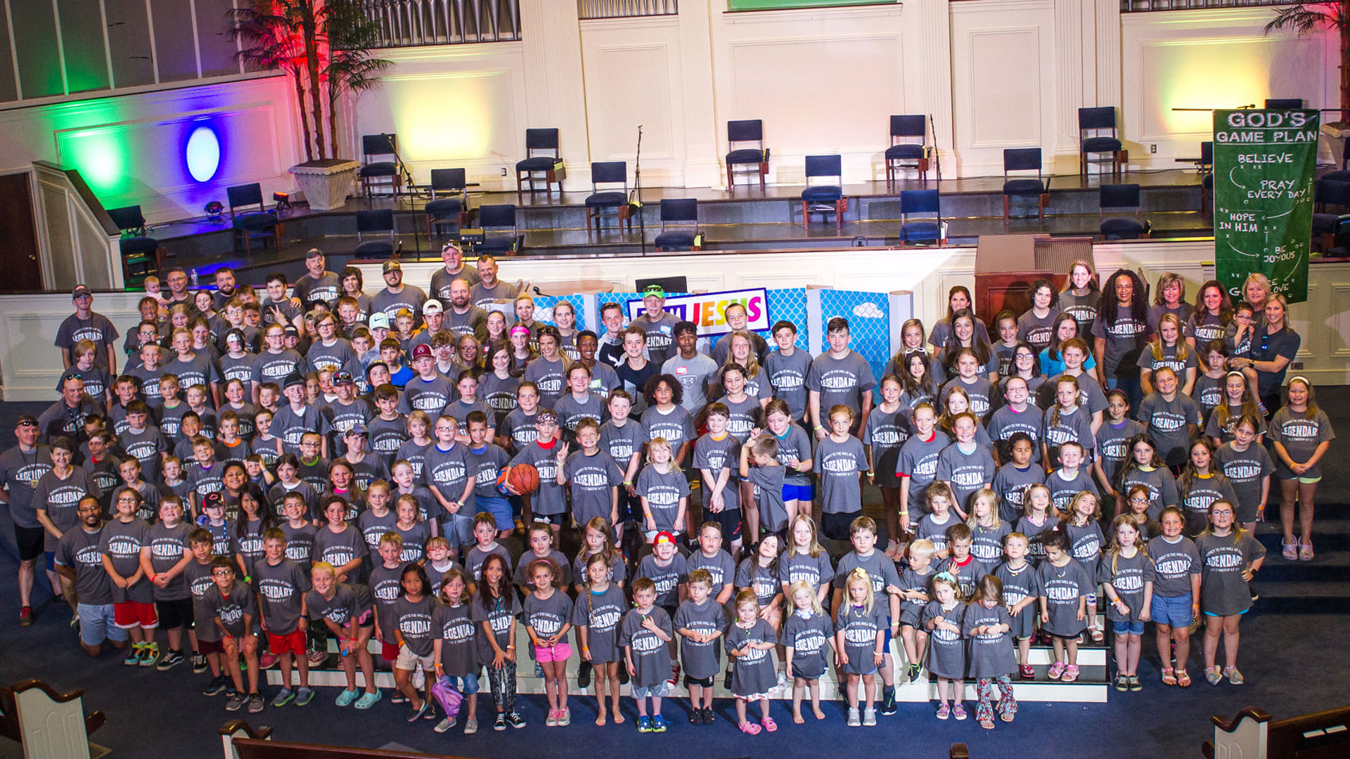 Each summer we host a one-week Sports Camp for kids in the community ages 6-10 years old. The kids get to learn about one of the following sports – Archery, Fishing, Soccer, Basketball and Cheer – but more importantly, we teach them about Jesus! This is such a fun week in the life of our church.